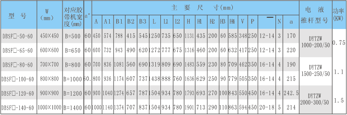外形尺寸及技術參數表(A、B型)